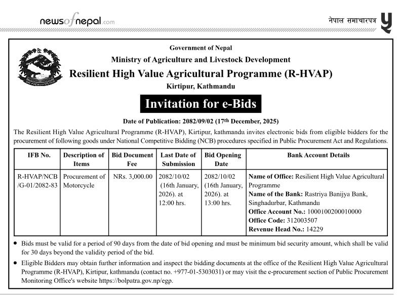 बोलपत्र आह्वान सम्बन्धी सूचना